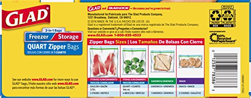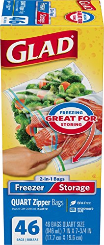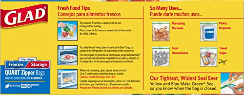 Glad Food Storage and Freezer 2 in 1 Zipper Bags - Quart - 46 Count
