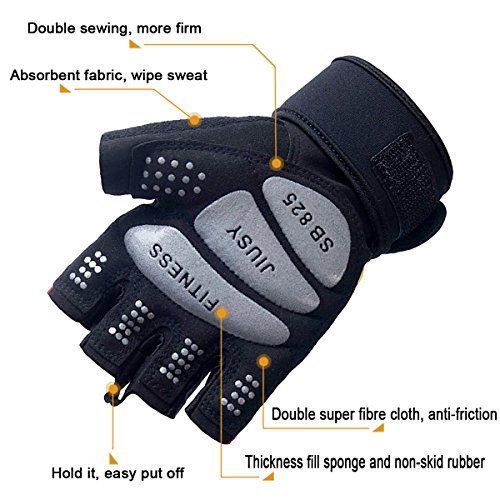 -. Title : JIUSY Strong Power Gym Gloves Cross Training Weight Lifting Dumbbell Sports Barbell Fingerless Half Finger Gloves Fitness Workout