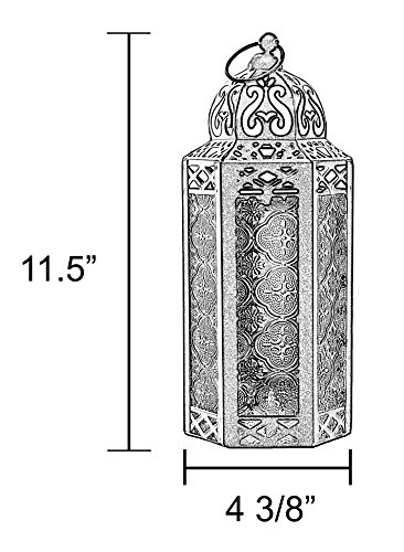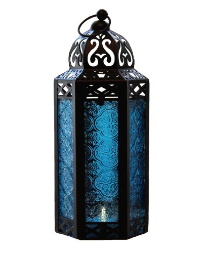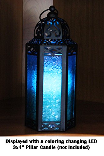 Vela Lanterns Mid-Size Table/Hanging Glass Hexagon Moroccan Candle Lantern Holders - Blue