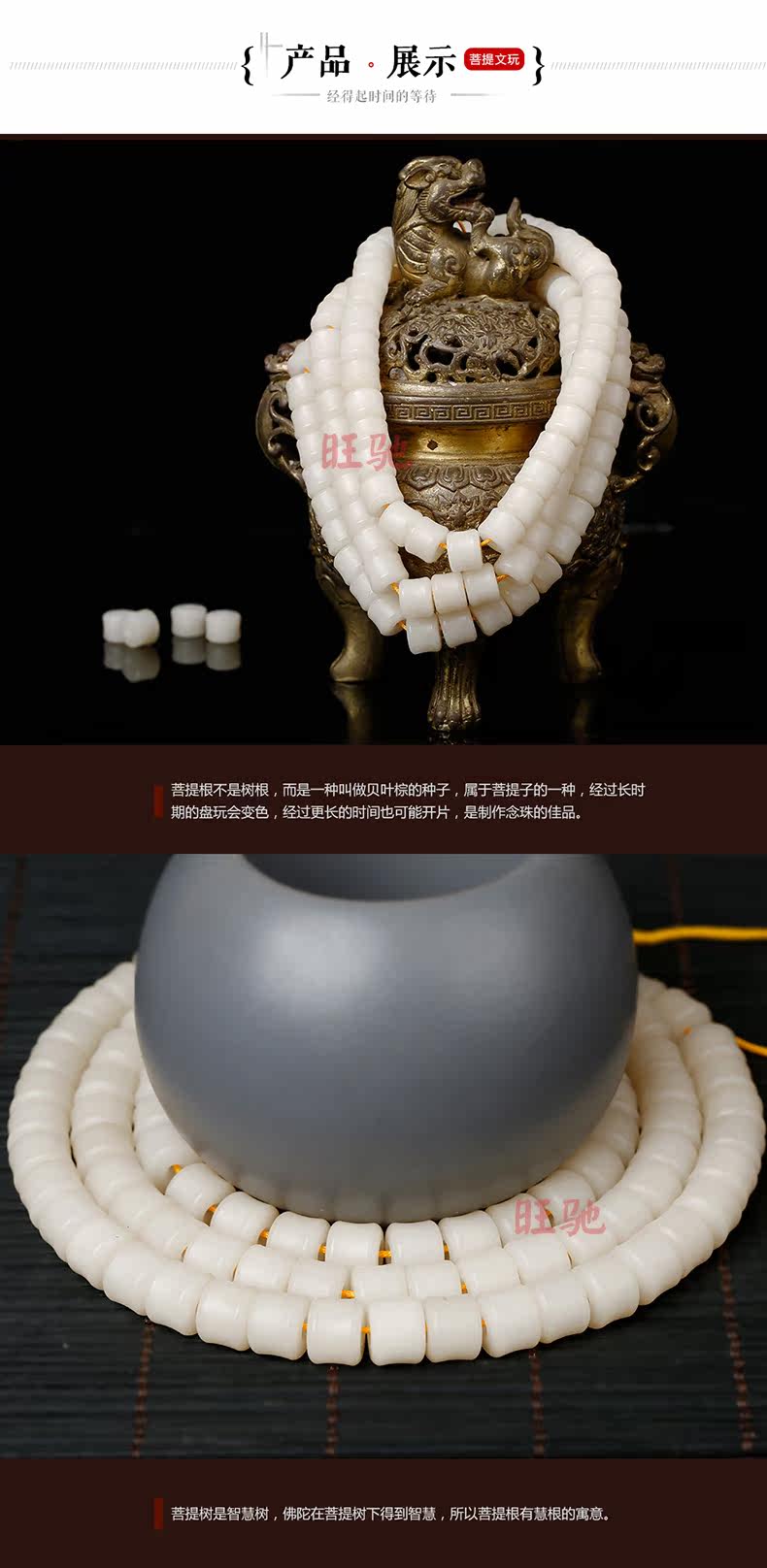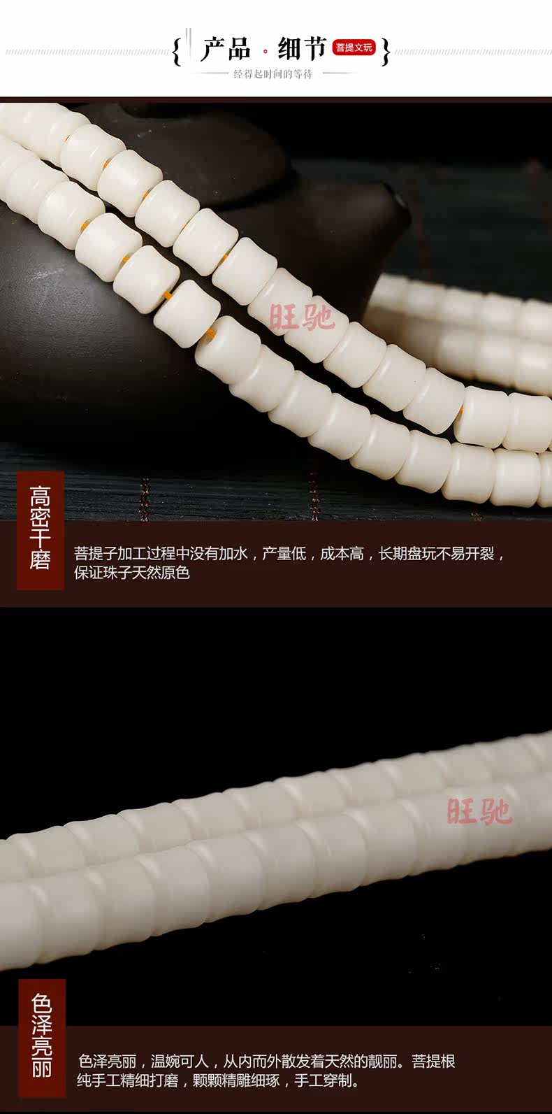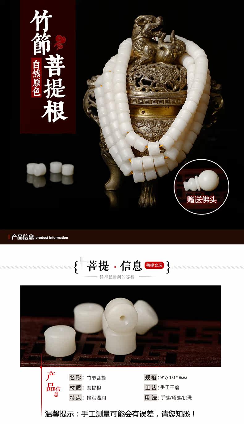 天然原色白玉竹节菩提根手串108颗手链 竹节散珠佛珠男女项链