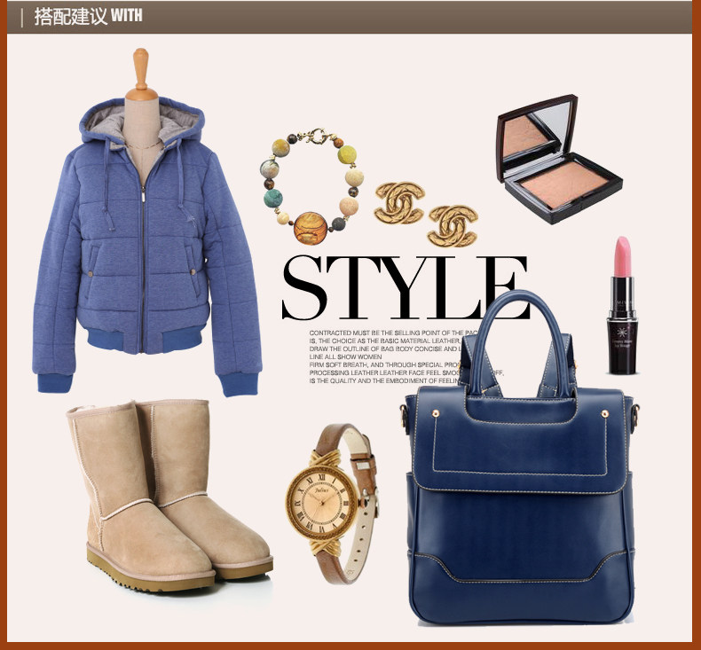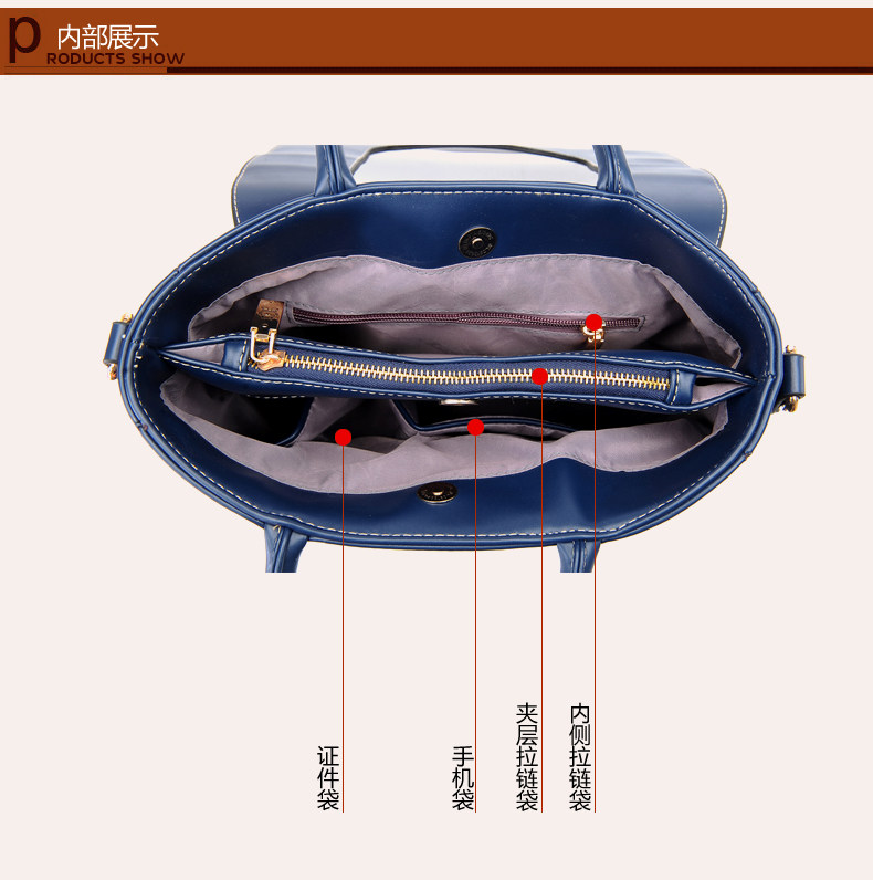 | 包包物语 | 2014新款多功能女包。内部1个隔层拉链袋,1个拉链袋,2个置物袋 | |||