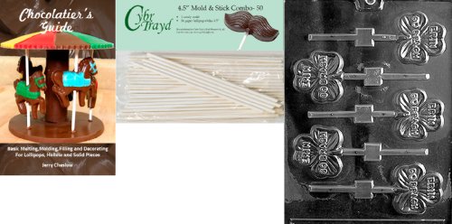 Cybrtrayd 'Erin Go Bragh Lolly' Patriotic Chocolate Candy Mold with 50 4.5-Inch Lollipop Sticks and Chocolatier's Guide