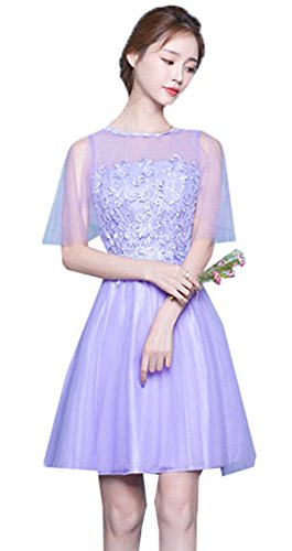 Title : SiYuan Purple Women's Sweet Floral Lace Ruched Wedding Bridesmaid Dress S