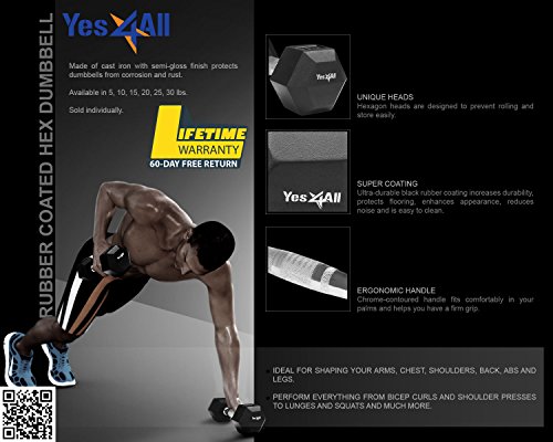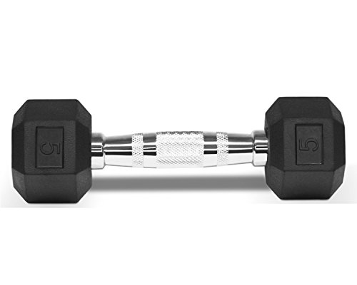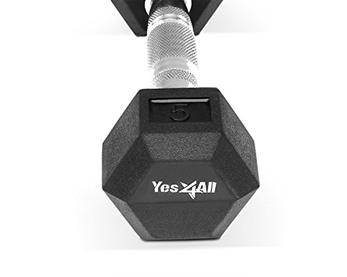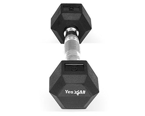 Yes4All Rubber Coated Hex Dumbbells 5, 10, 15, 20, 25, 30 lb Special Promotion, RB Black, 5 lb
