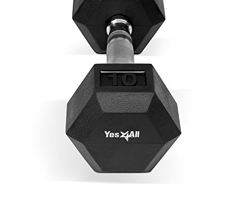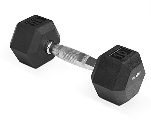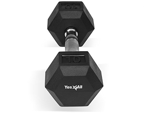 Yes4All AAAH Rubber Coated Hex Dumbbell, Black, 10 lb