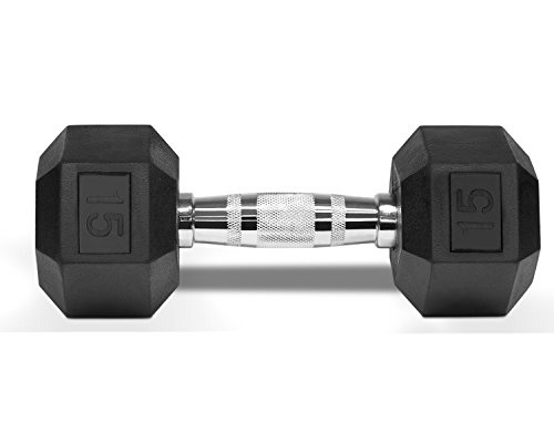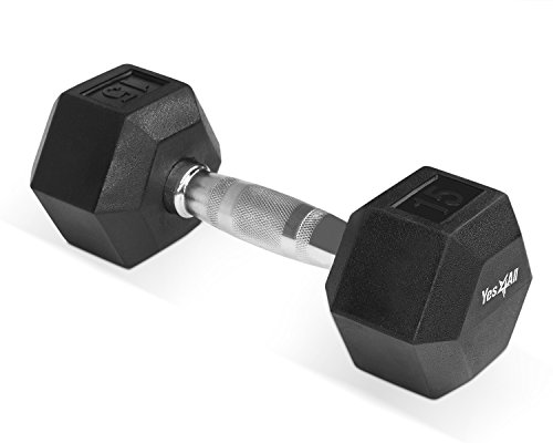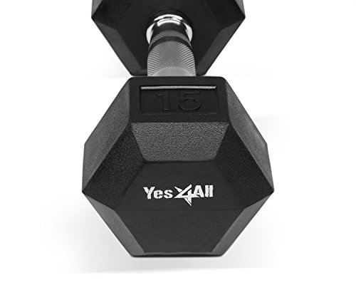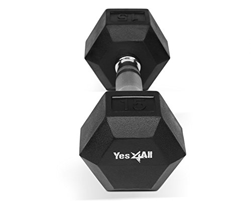 Yes4All Rubber Coated Hex Dumbbells 5, 10, 15, 20, 25, 30 lb Special Promotion, RB Black, 15 lb