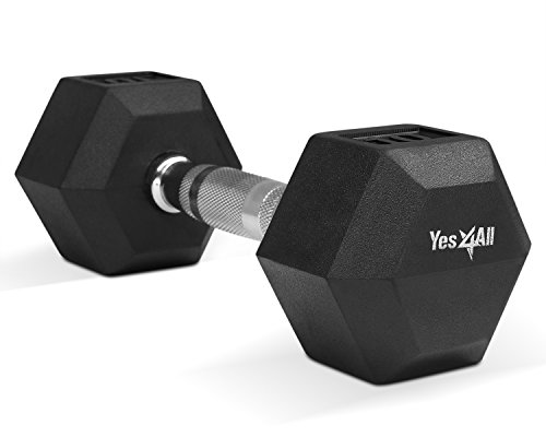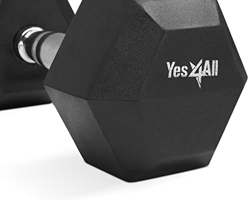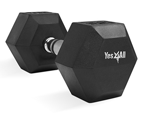 Yes4All Rubber Coated Hex Dumbbells 5, 10, 15, 20, 25, 30 lbs - Special Promotion (Black - 50 lbs)