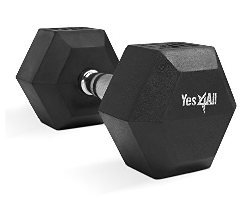 Yes4All Rubber Coated Hex Dumbbells 5, 10, 15, 20, 25, 30 lbs - Special Promotion (Black - 40 lbs)