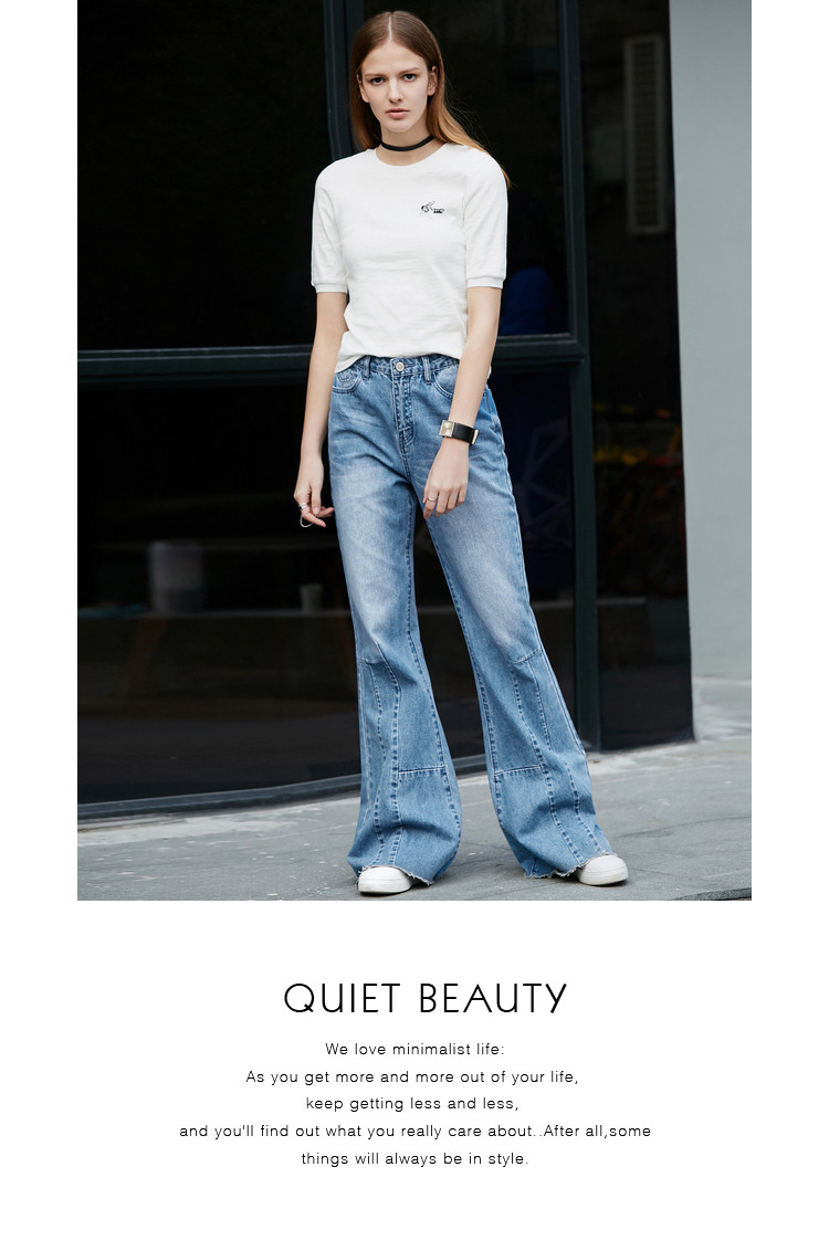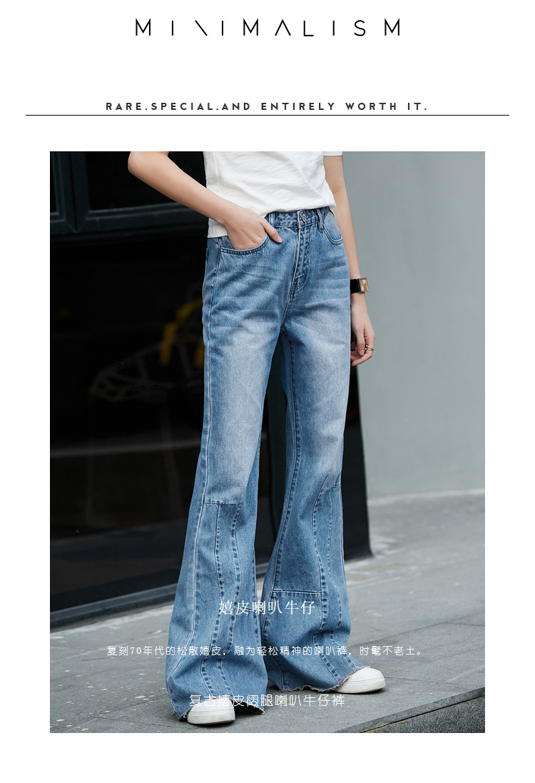 详情:嬉皮喇叭裤、拼接、磨白