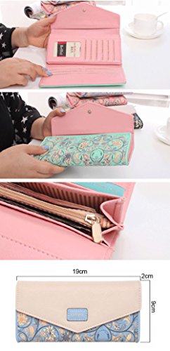 -. Title : OUTEYE Damen Lang Clutch Purse Handtasche Geldtasche PU Leder Geldbeutel Blumen Muster