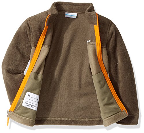Columbia Infant and Toddler Size Chart Columbia Little Kids and Big Kids Size Chart The Steens™ Fleece Jacket is an easy piece for cool-weather midlayer or outer layer wear. Regular Fit is an easy, lightly relaxed fit for comfortable range of motion. Fleece body:• MTR (maximum thermal retention) filament fleece increases surface area for higher warmth.• Stylish allover print varies with each color.• 250 g/m² fabric weight. Stand collar. Full-length zip. Long sleeves. Zip hand pockets. Straight hemline. 100% polyester. Machine wash and tumble dry. Imported. Measurements: Length: 19 1⁄2 in Product measurements were taken using size SM (8 Big Kids). Please note that measurements may vary by size.