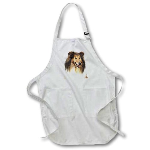 3dRose apr_4544_1 Rough Collie Portrait-Full Length Apron with Pockets, 22 by 30-Inch, White