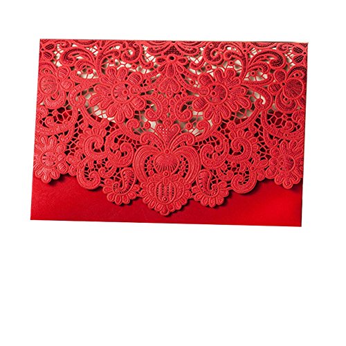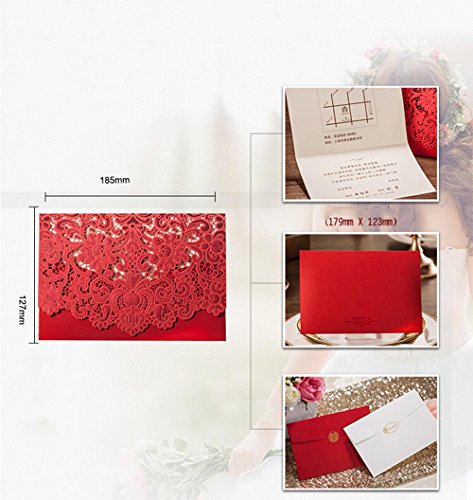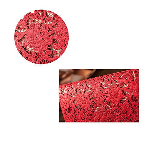 Patty Delicate Laser Cut Floral Wedding Invitation Cards for Party, Wedding, Birthday, Bridal Shower -- Set of 50 Pcs (Red)