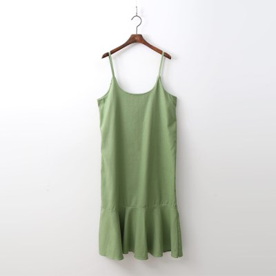 심플한 어깨끈이 시원한 느낌을 주는 슬리브리스 드레스.