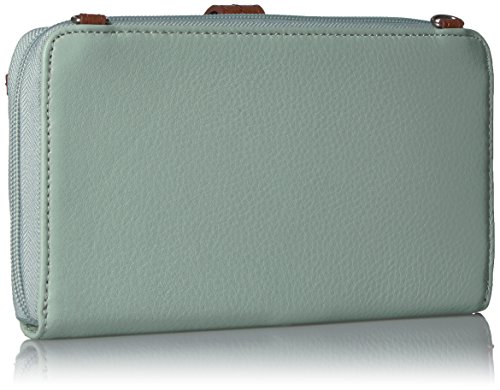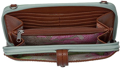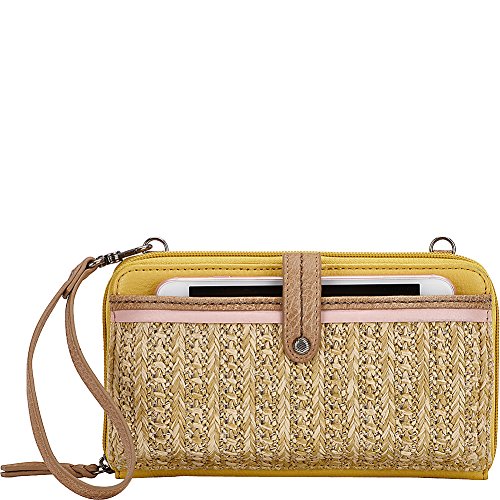 Features a removable wristlet strap and front phone pocket.