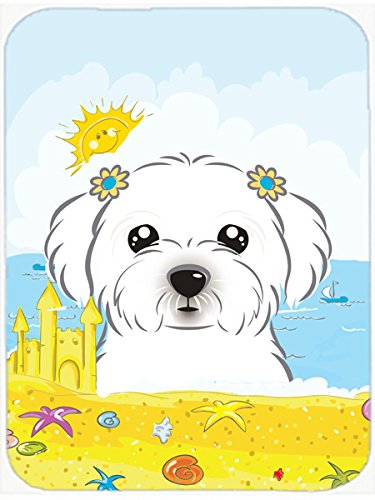 Caroline's Treasures BB2076LCB "Maltese Summer Beach" Glass Cutting Board, Large, Multicolor