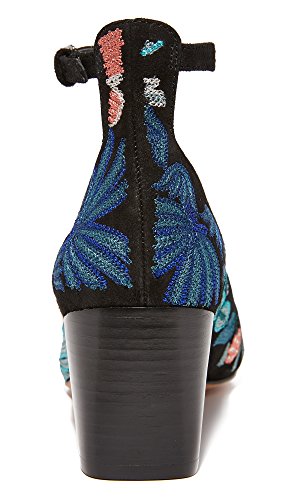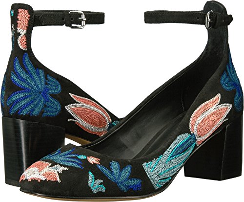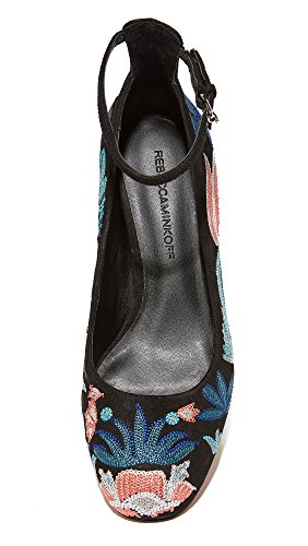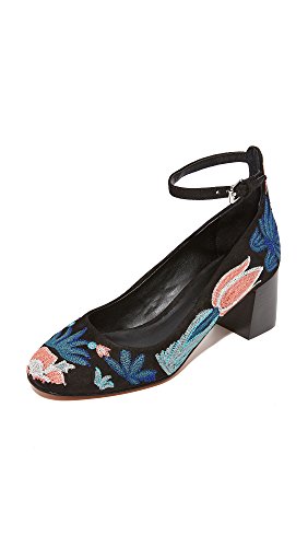Studio : Rebecca Minkoff Publisher : Rebecca Minkoff Binding : Apparel Product Description Bright, floral embroidery adds a charming touch to these suede Rebecca Minkoff pumps. Slim ankle strap with polished buckle closure. Stacked block heel. Man made sole. 0