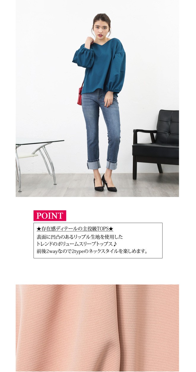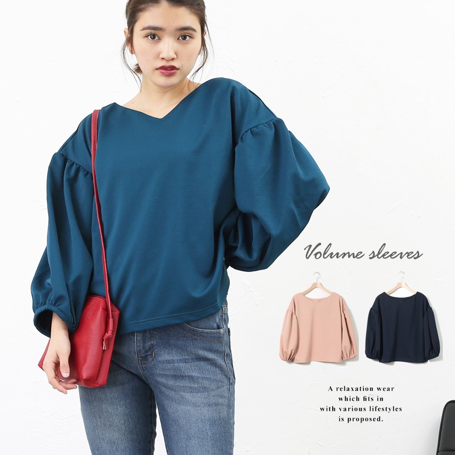 普段使いからオフィスまで幅広いシーンで使える1枚!シンプルな身頃に、袖口をバルーンに仕上げた女性らしいトップス。ゆったりラフな着心地で、気になる二の腕もしっかりカバー。スポッとかぶれるプルオーバーで着脱もカンタン楽ちんです。