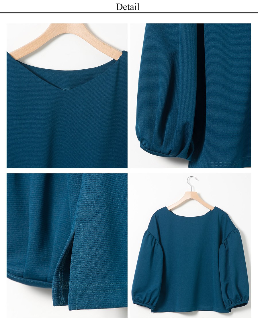 【カットソー Tシャツ レディース オフィスカジュアル Vネック バルーンスリーブ 長袖 大きいサイズ 春 トップス 無地 リップル素材 シンプル かわいい 体型カバー】