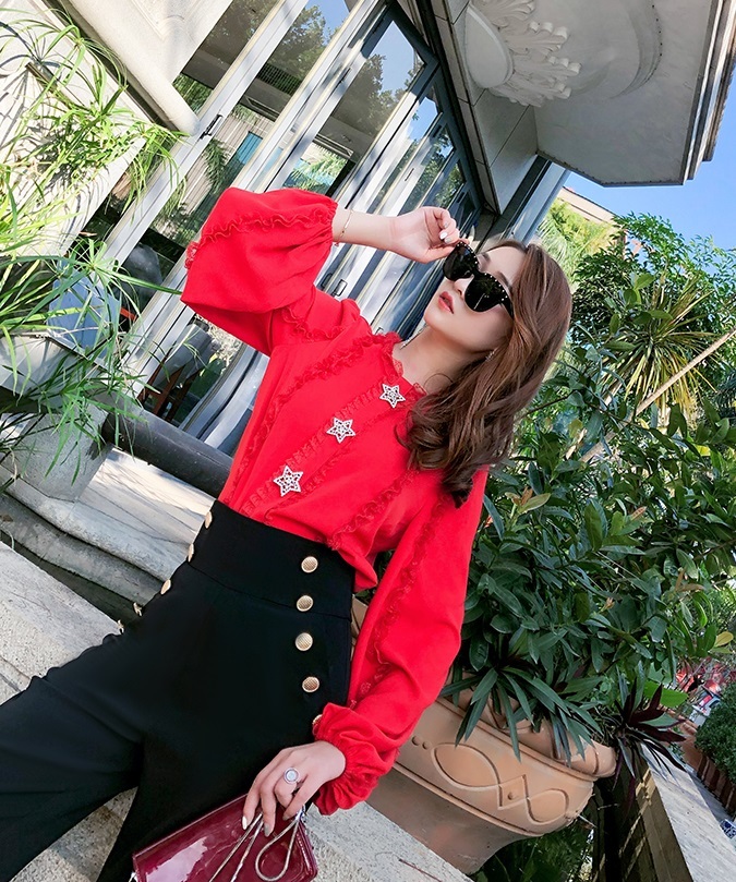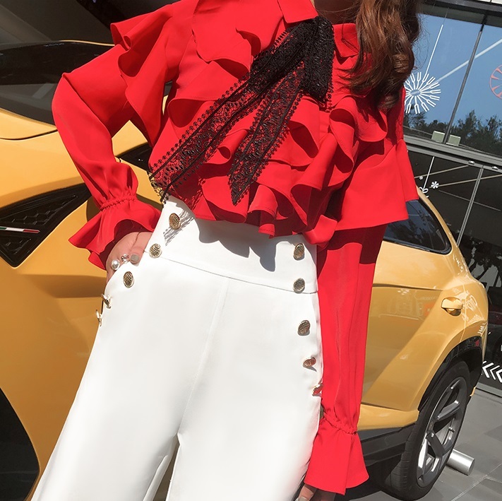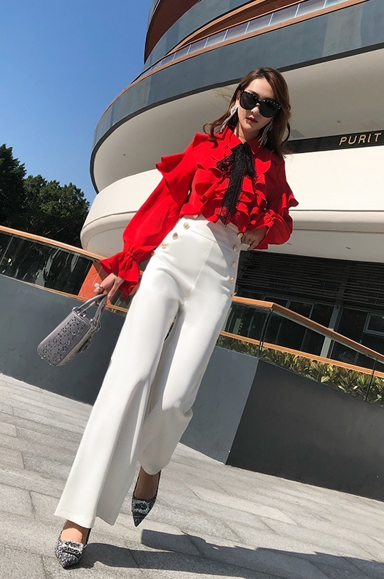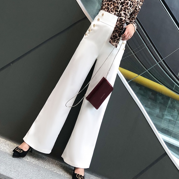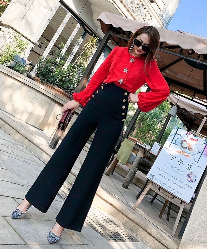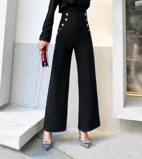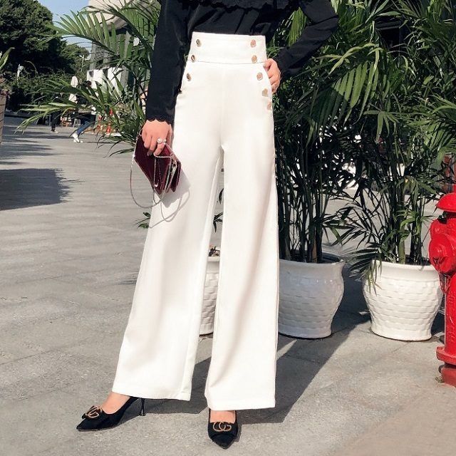 ゴールドボタンをあしらって、グッと高見えするハイウエストパンツです☆