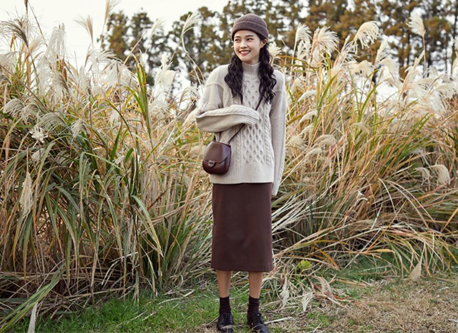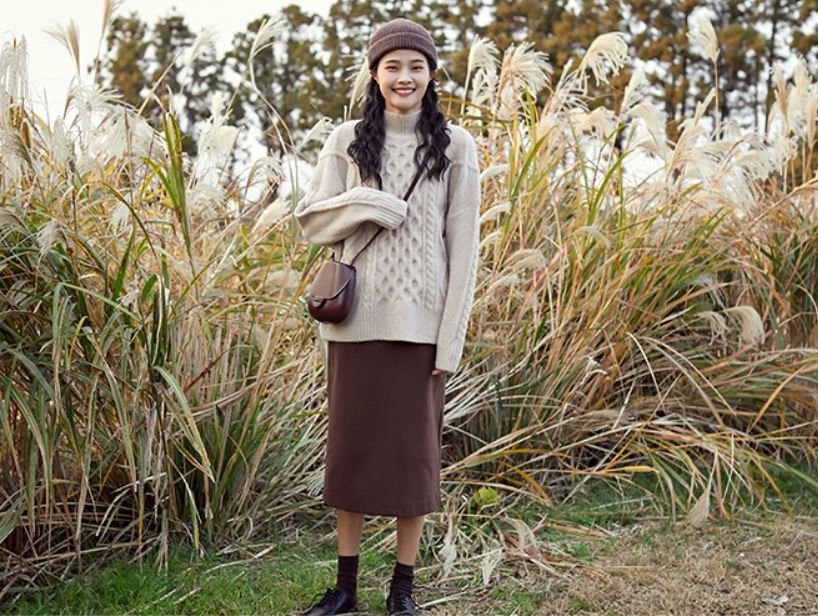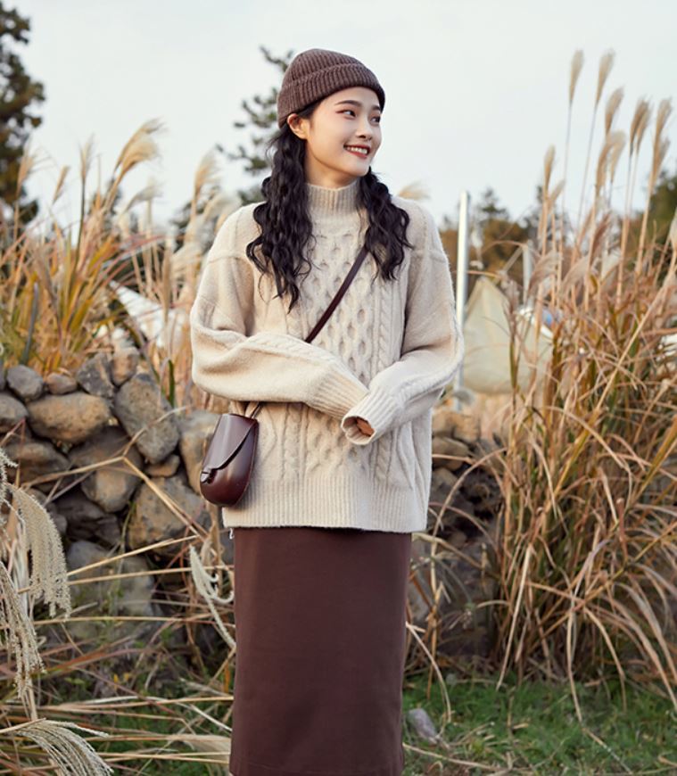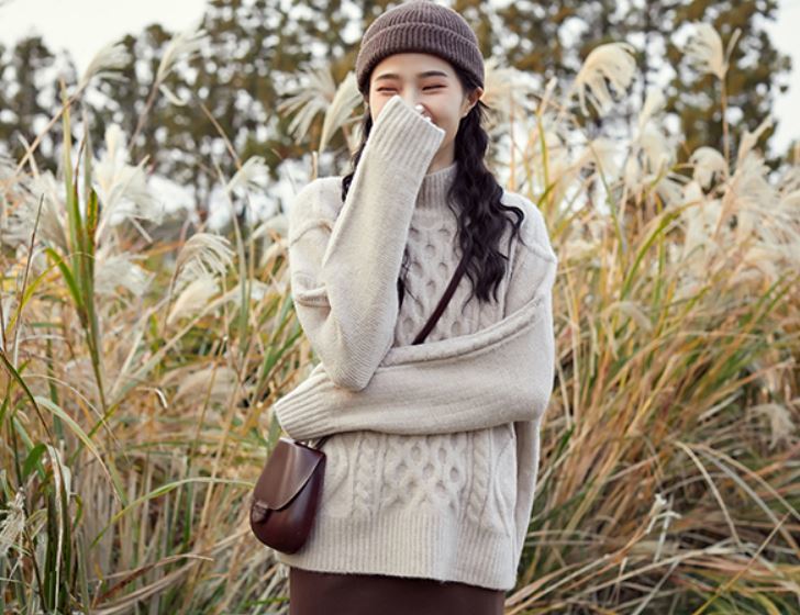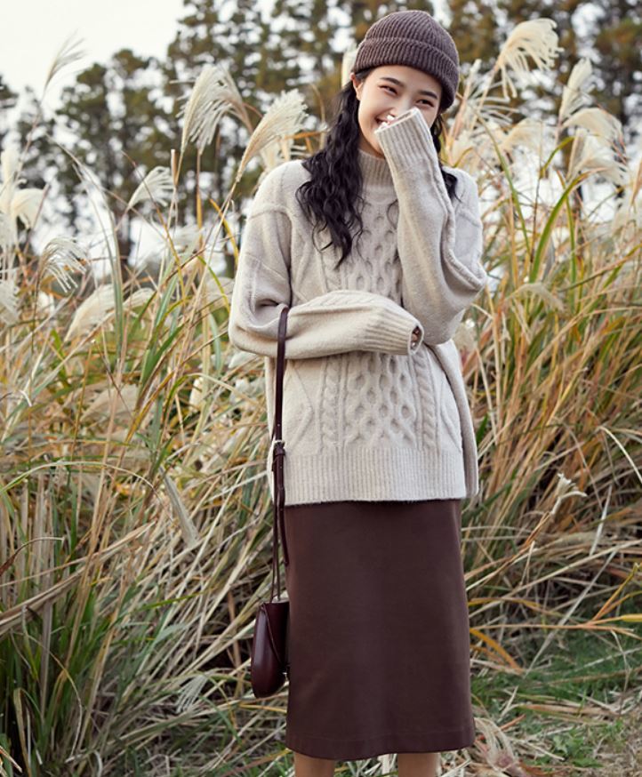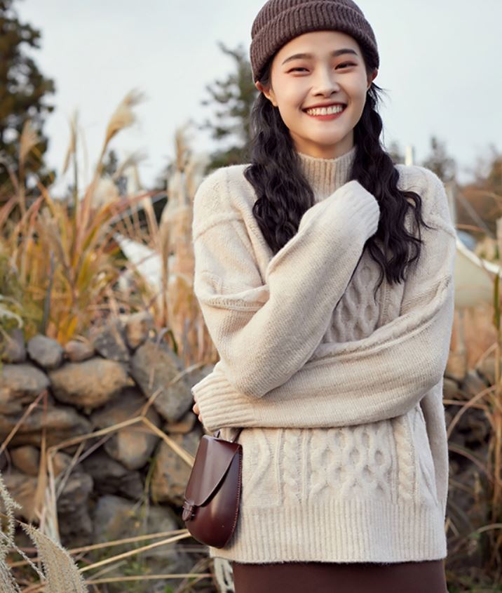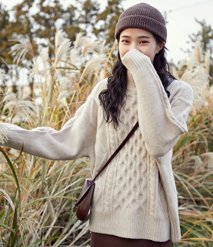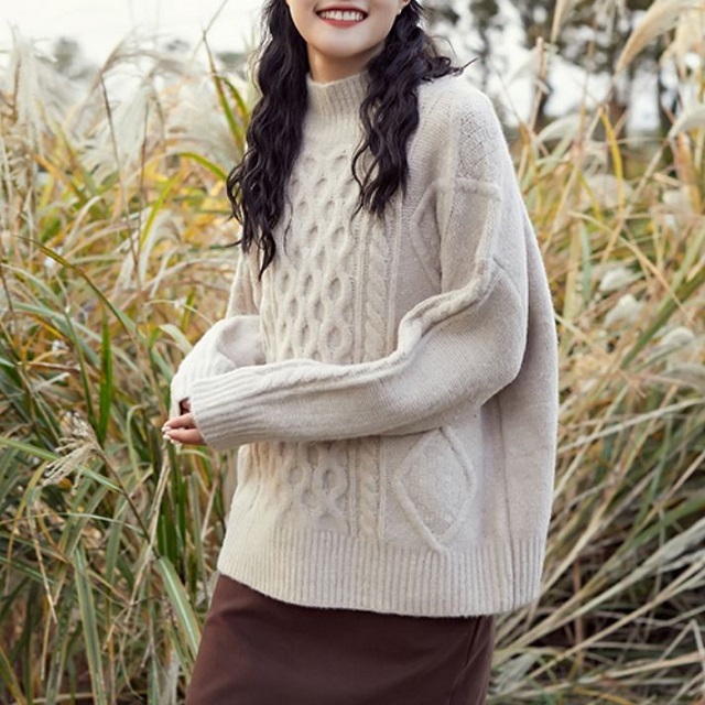 ふんわりとした素材とケーブル編みがガーリーなきれいめニット♪