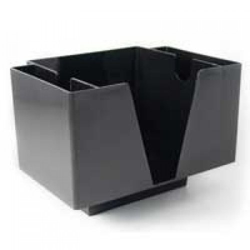 -. Feature : The Two Pocket napkin caddy is an economical way to keep your bar tops organized / The foot is designed to fit on a drink rail / The center fits standard bev naps (cocktail napkins) and the side two pockets can accommodate straws, picks, stirrers and more / This is a standard stocked accessory for any bar, and comes available in black and chrome / Napkins and refill products sold separately