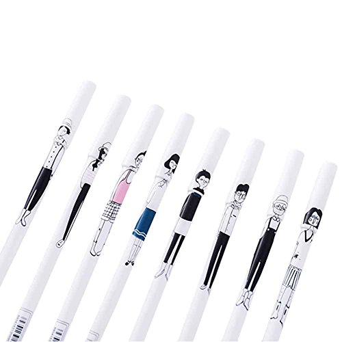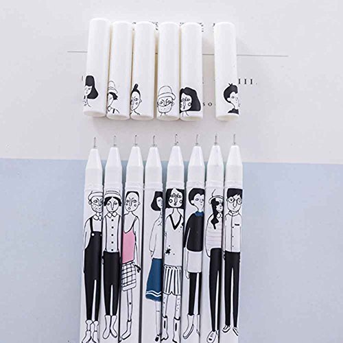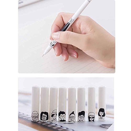 -. Title : BUYITNOW 8Pcs Creative Gel Pen 0.38mm Fine Point Hand-painted Characters Black Liquid Rollerball Pen