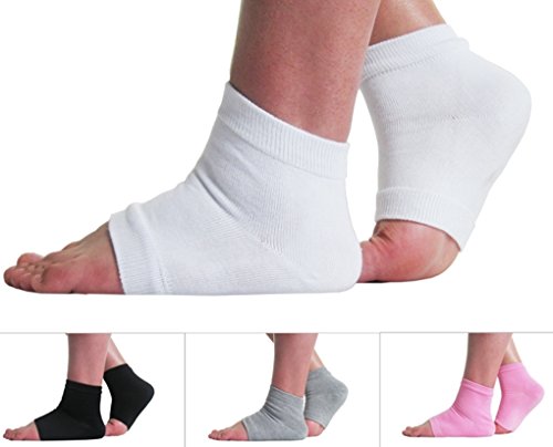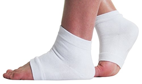 TASOM Gel Heel Ankle Socks Moisturizes Cracked Dry Heels Soft Foot Care Spa Support Helps Plantar Fasciitis Feet Pain Relief - White