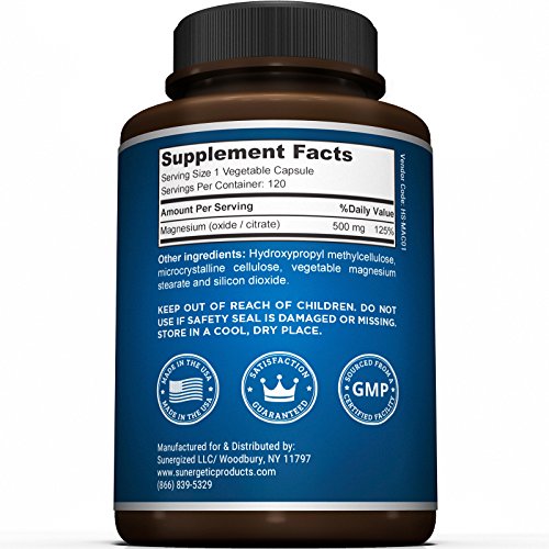 EXTRA STRENGTH MAGNESIUM CITRATE & OXIDE SUPPLEMENT: Each capsule of our elemental magnesium citrate supplement contains a potent 500mg blend of magnesium citrate and oxide. Our highly concentrated and absorbable magnesium supplement is easy to swallow, convenient and tasteless.