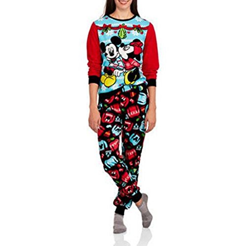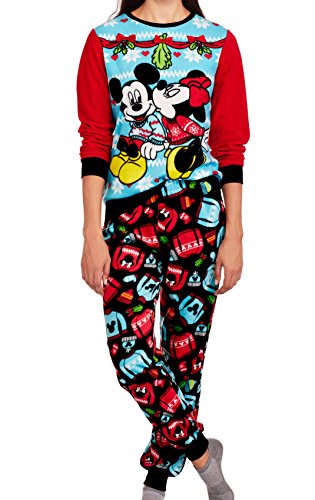 Sleep and lounge comfortably while showing your love for the iconic Disney characters Mickey Mouse and Minnie Mouse with this women's 2-piece sleepwear set. Both an ugly sweater and a matching pair of pants are included in this festive micro fleece set. The sweater has an adorable holiday-themed Minnie and Mickey graphic on the front, a set of 3D fabric bows and a contrasting set of cozy textured long sleeves, while the pajama pants have an all-over holiday-themed pattern and a hassle-free covered elastic waistband. This officially licensed Disney sleepwear set makes a great gift for fans of Mickey, Minnie and animated movies.Feature