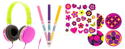 - Feature : Color, Create & Listen Safely! / Durable headphones for kids / Create your own stickers with 3 included Crayola markers / Decorate with 40 included stickers