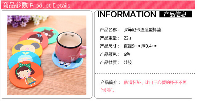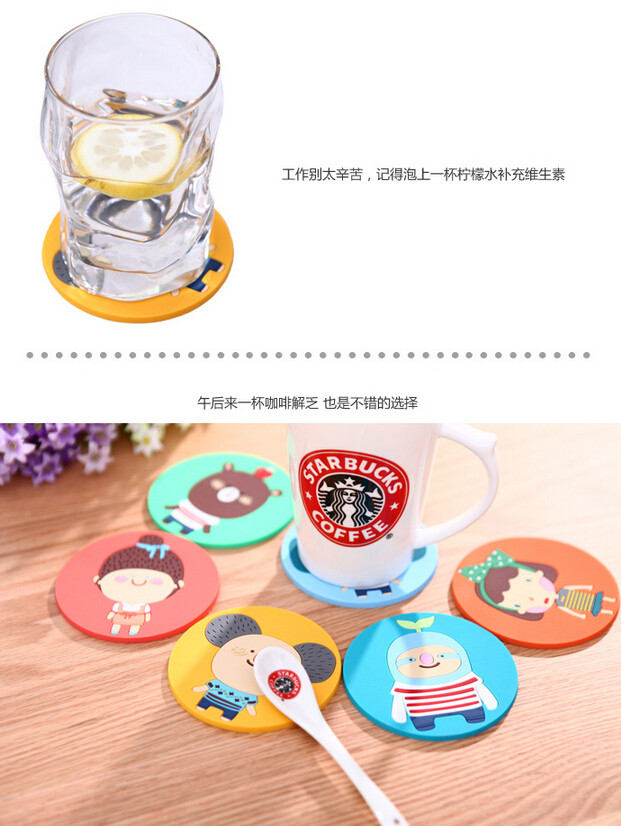 (1套5个)卡通硅胶隔热茶杯垫 创意家居生活日用品百货实用小商品
