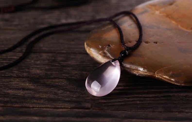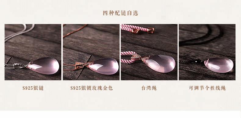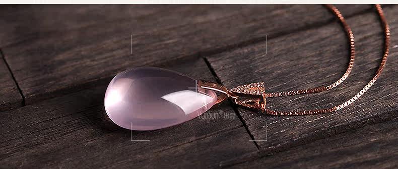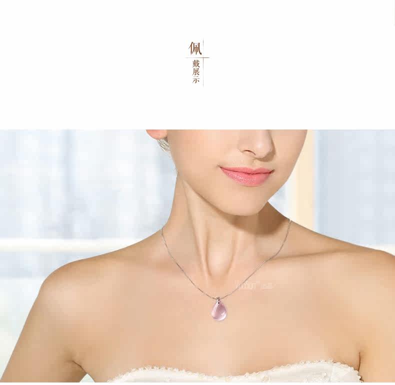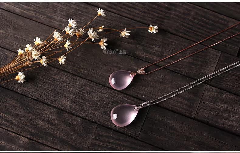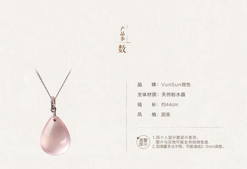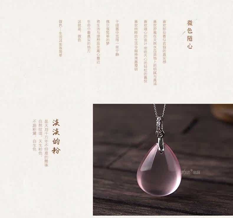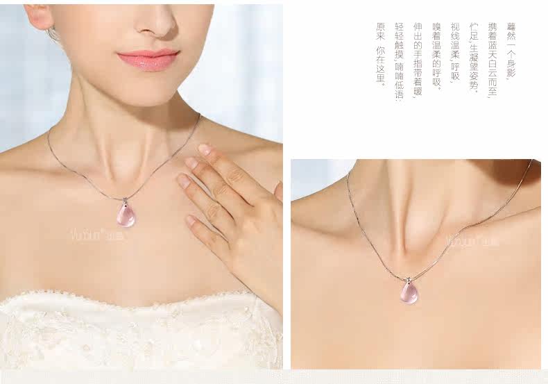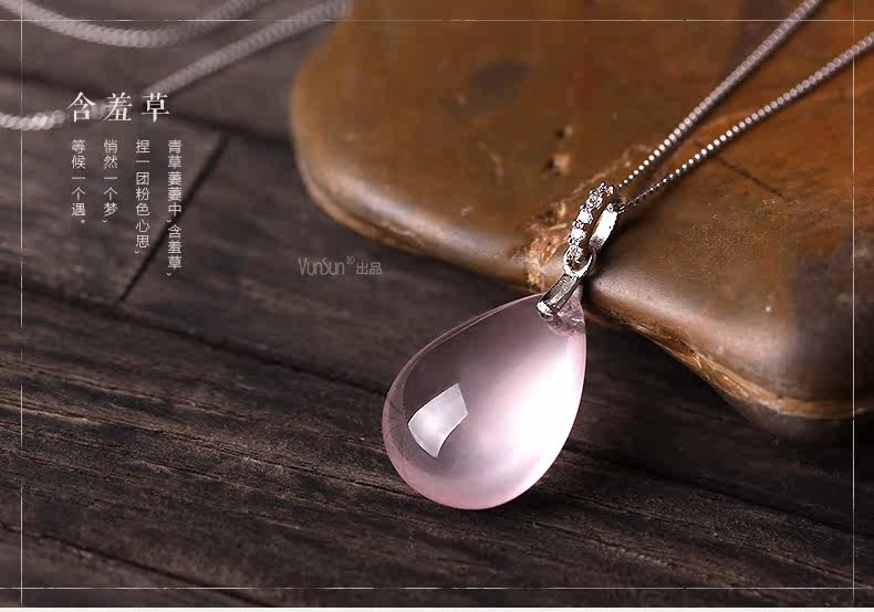 VunSun天然粉水晶女款吊坠芙蓉石甜美粉晶项坠925银礼物颈饰品