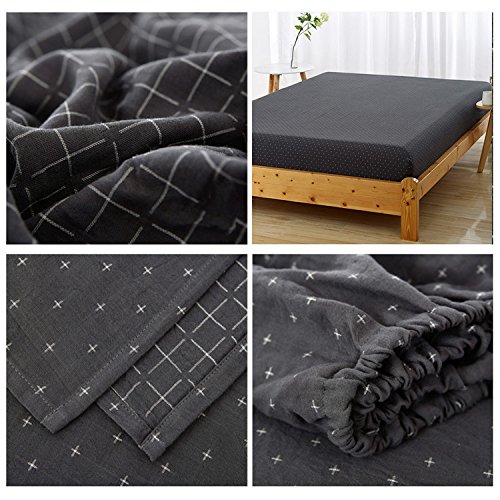 MKXI Fitted Sheet(Bottom Sheet Only)King Size 78"x80"with 15" Deep Pocket for Modern Bedding Set Corss Pattern Comfortable, Breathable, Soft-Dark grey