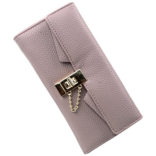 -. Title : Women's Long Litchi Grain Leather Lock the Chain Card Holder Zipper Hand Bag Wallet