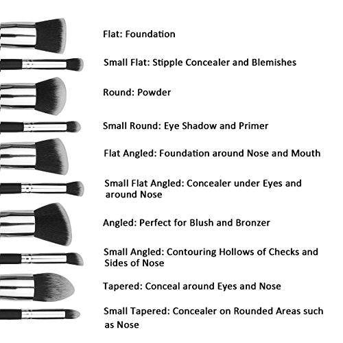 -. Title : Funxwe 10pcs Premium Cosmetic Makeup Brush Kabuki Blending Foundation Face Powder Blush Eyeliner Eyebrow Brushes Black Silver