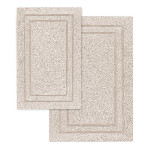 Superior 2-Pack Bath Rugs, Premium 100% Combed Cotton with Non-Slip Backing, Soft, Plush, Fast Drying and Absorbent - Stone, 20" x 30" and 24" x 36" Bath Mat Set