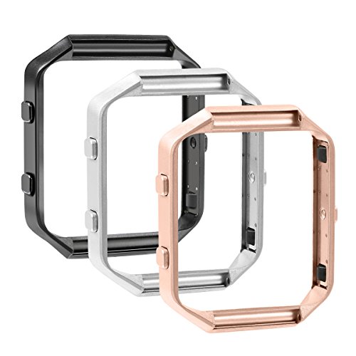 bayite Replacement Accessory Steel Frame for Fitbit Blaze Smart Watch Pack of 3, Black, Silver and Rose Gold