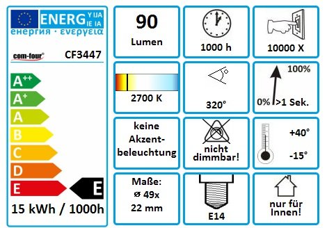 -. Title : Philips by COM-FOUR® Backofenlampe 15W 230V E14 SES 49x22mm 2700K EEK=E - [Energieklasse E]