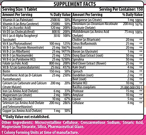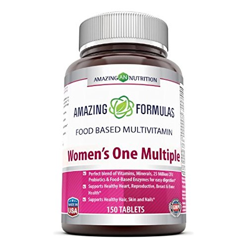 -. Binding : Health and Beauty -. Brand : Amazing Nutrition -. EAN : 0810180020565 -. Feature : Just one tablet of Amazing Nutrition's Women's One Multiple food based multivitamin may serve as a great way to provide specific nutrients a women's body need to stay healthy and active / This Multivitamin is a perfect blend of vitamins, minerals, plus 25 million CFU probiotics and food-based enzymes for easy digestion. / All Amazing Nutrition products are manufactured in accordance with Good Manufacturing Practices (GMP), among the highest standards in the world. / All our products are proudly made in USA with Garanteed Purity & Potency. We offer best quality products for the best value. All our products are Third Party Tested. We do not compromise on quality, our products are free of Artificial ingredients, Stearates, Sulphates, Dioxides and Laurates. / Our Formula contains: 800 mcg Folic Acid, Vitamin B3, B6 & B12 and Magnesium for Nerve Cell Protection, Heart Health & Reproductive Health 200 mg of Calcium along with 800 IU Vitamin D3 for optimum calcium absorption to support Bone and Brest Health 6 milligrams (33 percent DV) of Iron for Healthy Red Blood Cells and Immune System Biotin and Vitamin A, C & E for healthy Hair, Skin and Nails A complete B-complex (including B1, B5, B6, and B12) and Abundant Antioxidants like Citrus Bioflavonoids, Selenium etc. for Natural Energy & Healthy Ageing Vegetable juice complex with Dong Quai, Kale, Spinach, Dandelion, Spirulina and Beet etc for Hormonal Balance and Overall Well-being -. Label : Amazing Nutrition -. Manufacturer : Amazing Nutrition -. PackageQuantity : 1 -. ProductGroup : Health and Beauty -. ProductTypeName : HEALTH_PERSONAL_CARE -. Publisher : Amazing Nutrition -. Studio : Amazing Nutrition -. Title : AMAZING NUTRITION WOMENS' ONE MULTIPLE 150 Tablets (3 months' supply) * Just one tablet of Amazing Nutrition Women's one multiple taken daily may serve as a great way to provide nutrients that a women's body need to stay healthy and active. -. UPC : 810180020565