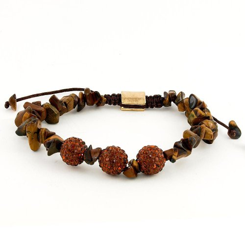 Yellow Tiger's Eye and Brown Crystal Shamballa Bracelet