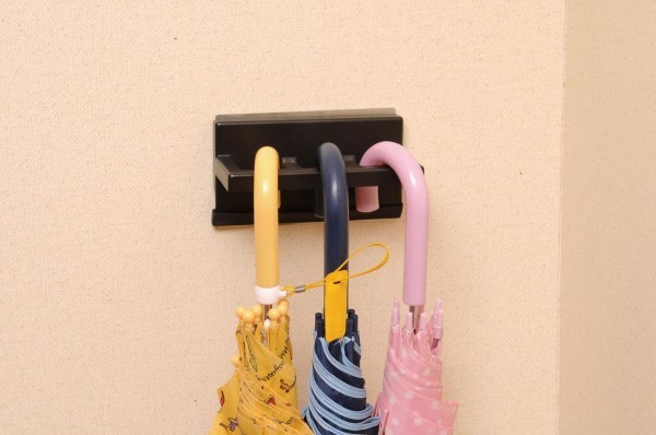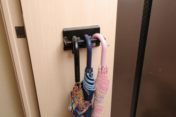 | 磁石で簡単に取付け・取り外しが可能なので、雨の日には家の外、傘が乾けば家の中に手軽に移動できます。付属プレート(鉄製)を使えば、木製の扉やアルミ製の扉にもつけることができます。雨が降らない日には玄関収納の中に取り付けられて、スマートに収納できます。もちろん、折りたたみ傘もひっかけることができます。保持荷重は1.5kg。一般的な傘が3~4本掛けられます。 |