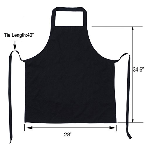 - Generous 34.6" in length and 28" wide, providing superior coverage that keeps your clothes safe from spills and splatters.Also extra long ties that can be tied in front or back.