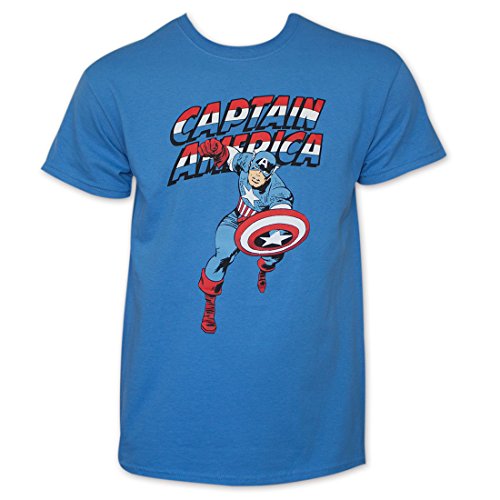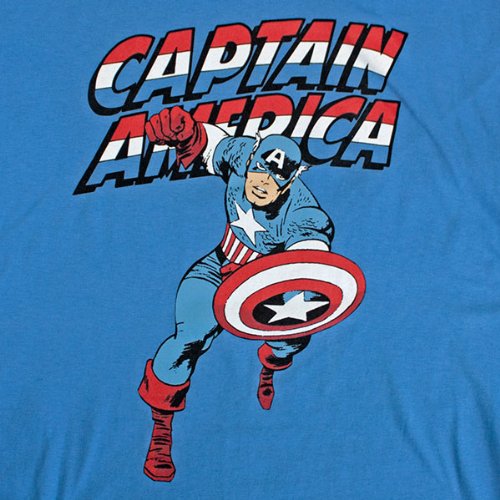 Studio : Impact Merchandising Publisher : Impact Merchandising Binding : Apparel Product Description Become a patriot just like 'ol Cap here when you go in this Captain America t-shirt! This blue Marvel Comics t-shirt for men is made of 100% cotton and features the "Captain America" logo in red, white, and blue along with Captain America himself straight out of the vintage comic books. 0