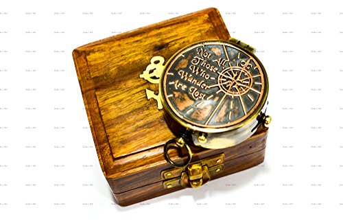 MATERIAL: Made From Solid Brass Metal With A Handcrafted Sheesham Wooden Box With "Not All Those Who Wander Are Lost" Quote Embossed On It.