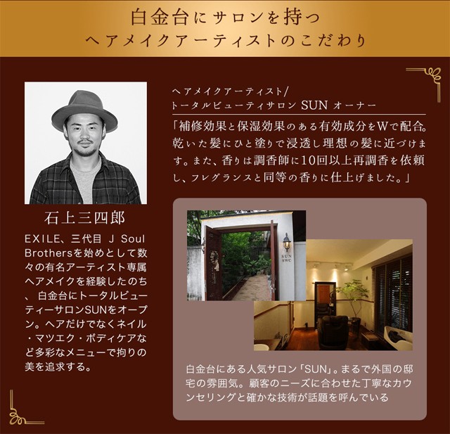 | 原材料 | シクロペンタシロキサン、ジメチコノール、シクロヘキサシロキサン、トリ(カプリル酸/カプリン酸)グリセリル、トコフェロール、セテアラミドエチルジエトニウム加水分解コメタンパク、加水分解ゴマタンパクPGプロピルメチルシランジオール、ラウリルジモニウムヒドロキシプロピル加水分解ケラチン(羊毛)、ヘマトコッカスプルビアリス油、コメ胚芽油、アクリレーツコポリマー、シクロヘキサン-1,4-ジカルボン酸ビスエトキシジグリコール、PCA-Na、乳酸Na、アルギニン、アスパラギン酸、PCA、グリシン、アラニン、セリン、バリン、プロリン、トレオニン、イソロイシン、ヒスチジン、フェニルアラニン、水、エタノール、グリセリン、フェノキシエタノール、香料 |