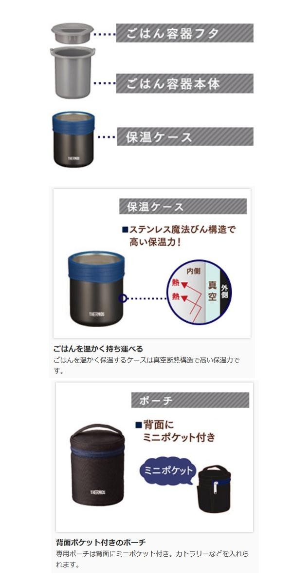 | 仕様 | 食洗機対応(保温ケースは不可) 電子レンジ対応(ごはん容器フタ・保温ケースは不可) 保温効力(6時間/保温ケースのみの場合):54度以上 保温効力(6時間/保温ケースを専用ポーチに入れた場合):57度以上 |