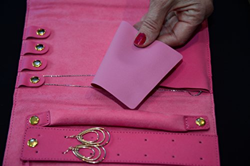 •TWO POUCHES INCLUDED - Larger jewelry is always difficult to pack. Included are two jewelry bags. Use the strings to pull them closed and then place them over the snap on the jewelry travel roll. You will love this cute, convenient, travel jewelry cases. It is a must for every traveller.