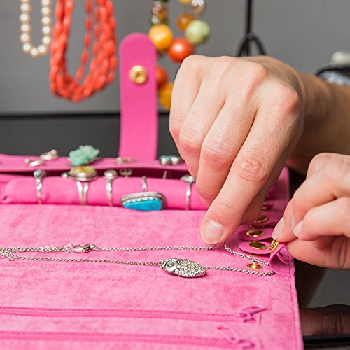TANGLED NECKLACE ELIMINATED If you dislike untangling your necklaces then this jewelry holder for women is what you need. To ensure your necklaces don't tangle there are snaps at the top and bottom of this jewelry case for where you place your necklaces. There is also a cover over your necklaces to ensure that other jewelry is not scratched.