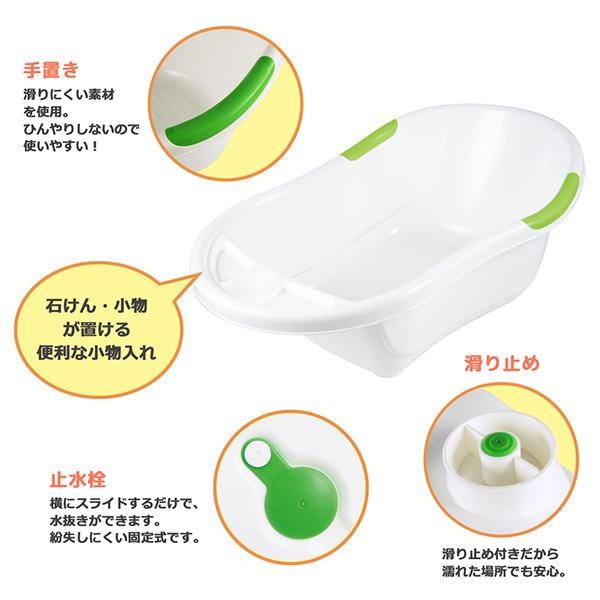 | ゆったりサイズの床置きタイプのベビーバスです。 |